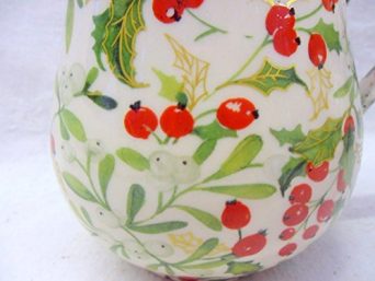 Christmas mistletoe chintz bellied cream jug by Heron Cross Pottery.